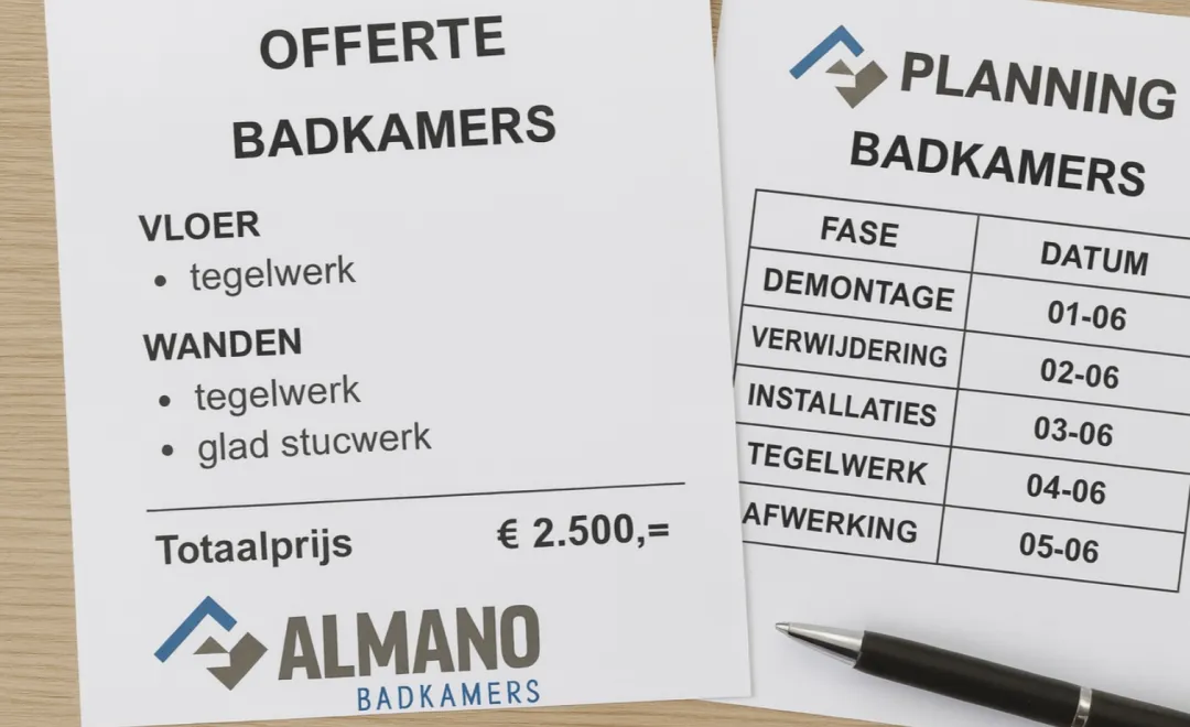 Bij Almano Badkamers weet u altijd waar u aan toe bent. Eén aanspreekpunt, korte lijnen, en een vaste werkwijze die werkt.